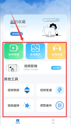 1、播放本地媒体文件,用户可导入手机中的视频、音频文件,直接进行高清流畅的播放。