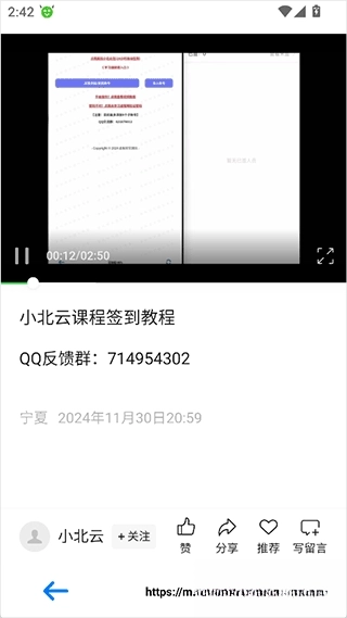 3、操作的详细教程可以观看视频进行操作,需要提醒的是在签到填写地址时要认真写的,因为老师那边会显示地址,不显示或显示错误就扫不到正确的签到二维码了