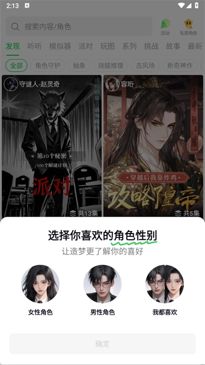 选择你喜欢的角色性别