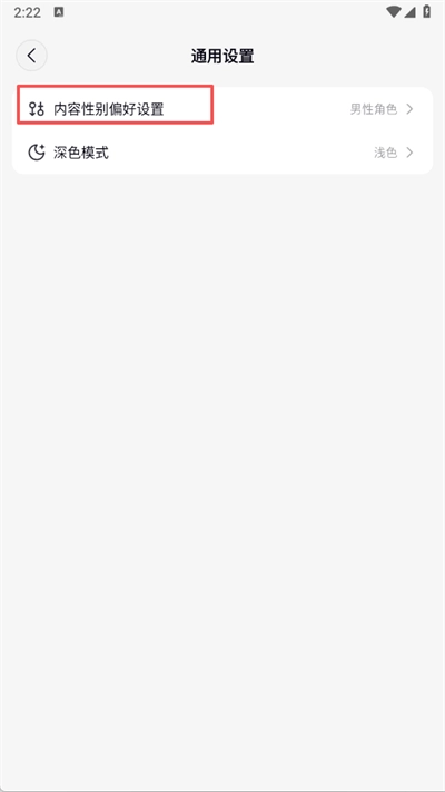点击内容性别偏好设置即可