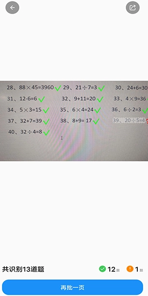 3、最后只需等待系统数秒,就能快速高效地完成孩子口算作业的批改,之后还能再次进行批改操作。