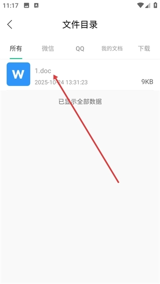 4、在文件目录里找到目标论文文档(例如【1.doc】),选中该文件就能完成论文上传,为接下来的查重工作做好准备。