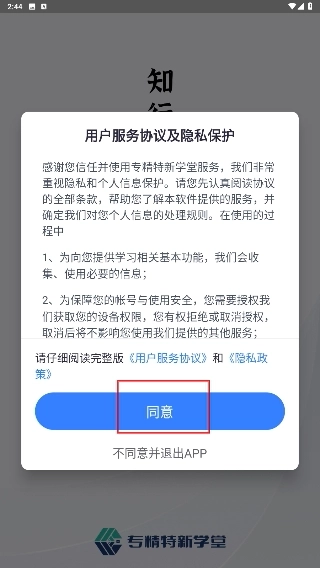 1、当弹出《用户服务协议及隐私保护》窗口时,请仔细阅读相关条款,随后点击【同意】按钮,完成协议确认操作,即可进入应用。