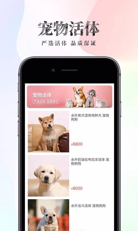 进入宠物活体页面,你可以点击查看大量优质的宠物活体,并且能够直接支付完成购买。