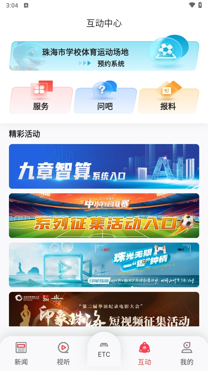 请下载并安装我们平台提供的观海融媒最新版本,启动软件后找到并点击【互动】板块。