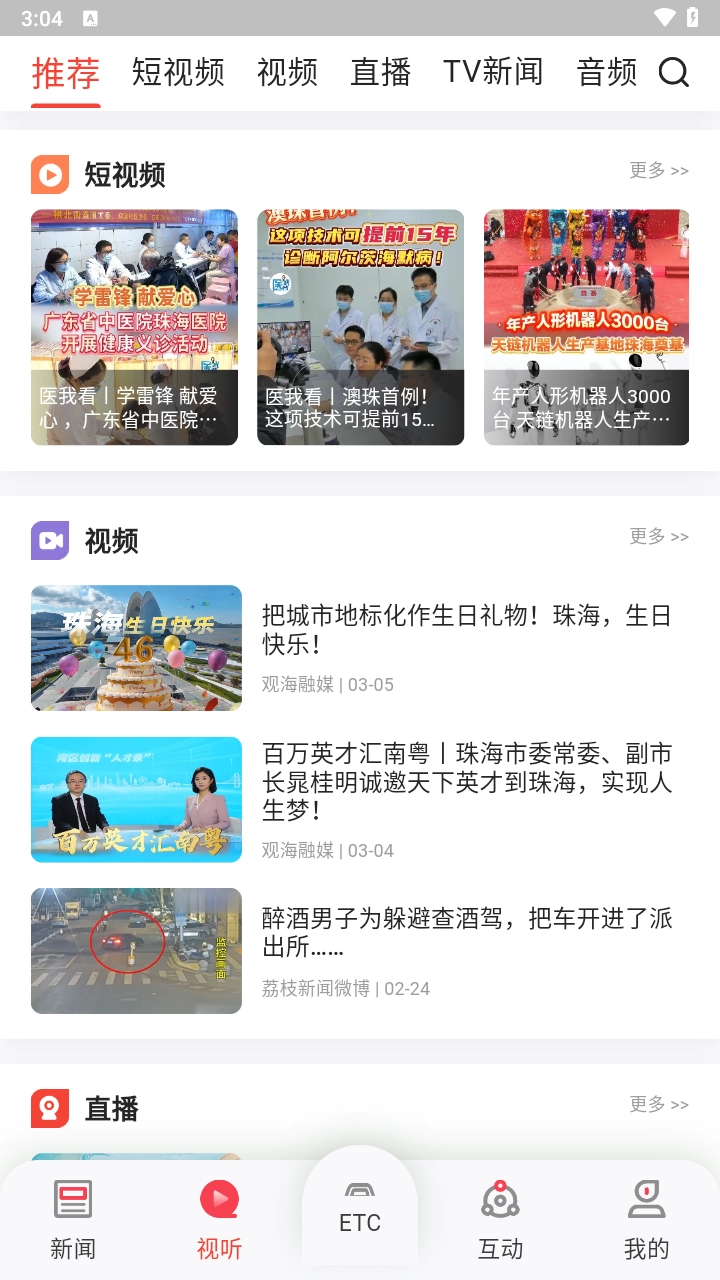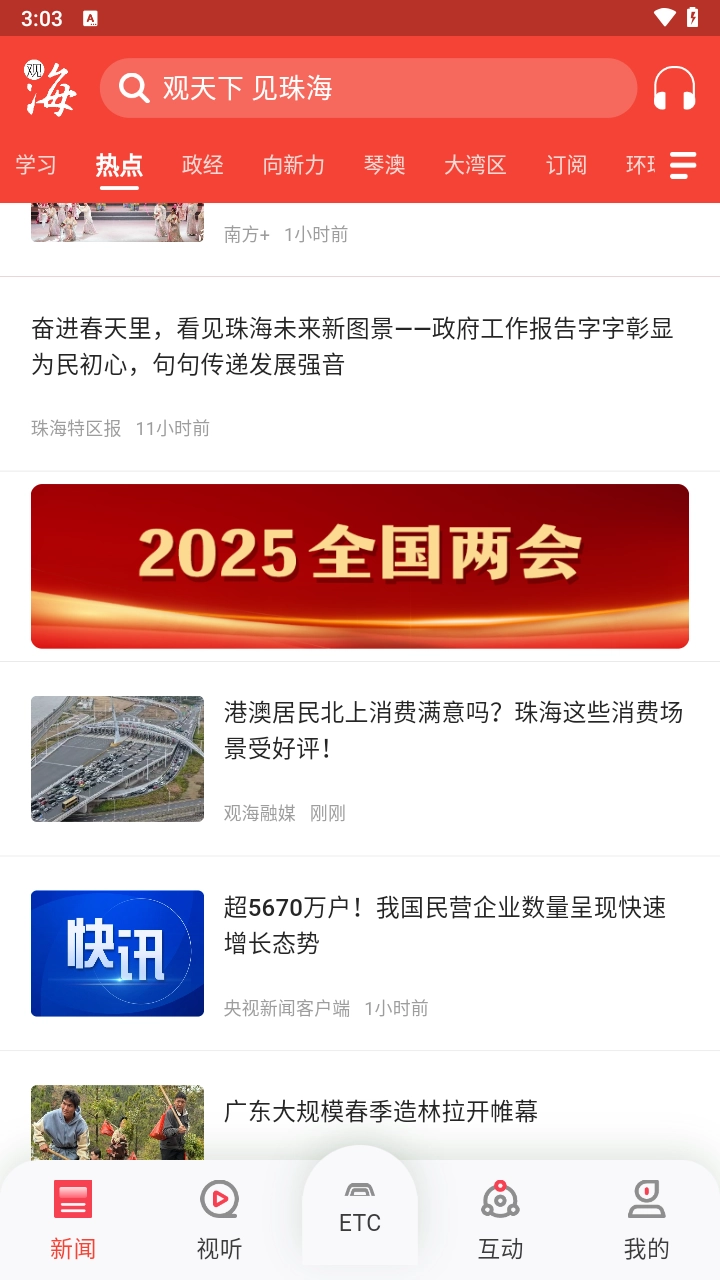 观海融媒是专门为珠海市民开发的新闻政务类应用,这里汇聚了海量本地资讯,包括政务动态、娱乐热点、财经体坛等多元内容,能让你及时掌握珠海的最新发展动态;平台还提供丰富的精彩短视频,本地新鲜事一键即可获取,同时支持收听本地广播电台,感兴趣的话就来体验吧!