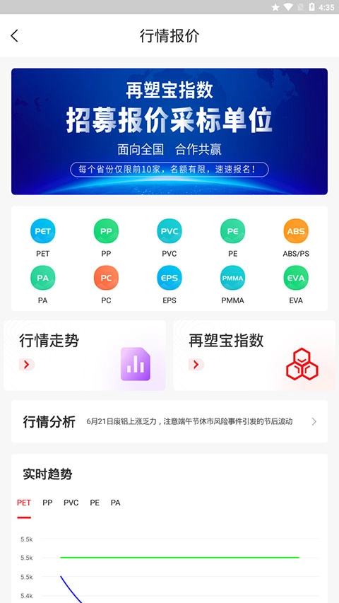 点击再塑宝上方的“行情报价”