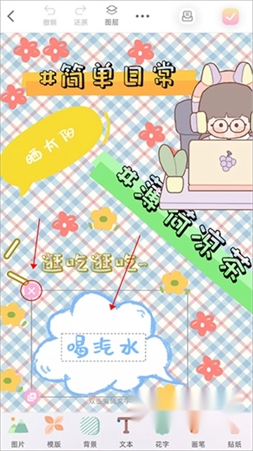 进入手账编辑界面后,找到需要移除的水印,点击对应的“x”图标即可完成移除操作,整个过程十分便捷。