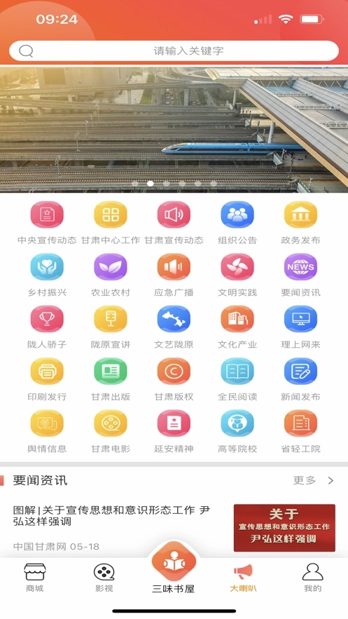 3.平台内容主要包含三味书屋、影视、大喇叭、超市及我的这五个板块。
