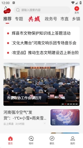 云上辉县是专为咱本地人打造的资讯客户端!这里面全是本地新鲜事儿,咱们用它就能轻松浏览本地热门新闻,特别方便。它打破了传统看新闻的方式,给咱用户提供了一个全新的新闻平台。在这上面,本地所有新闻资讯都能随时获取,不受时间和地域限制,不管在哪儿,手机就像随身的移动电视,哪怕在外地也能第一时间收到本地最新消息,这可是咱本地人专属的资讯渠道,轻松掌握本地实时动态,有需要的话赶紧来体验吧!