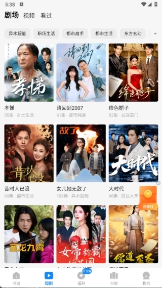 2、短剧中设有各类精彩剧场,方便你及时观看最精彩的短剧内容,此外还有视频板块和看过板块。