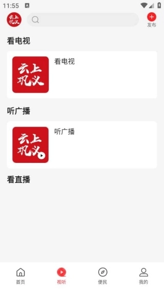 2、视听板块提供看电视、听广播等选择,获取资讯的方式较为多样。