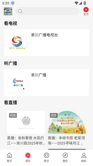 3、视听专区对地方电视台和广播电台的资源进行整合,同时提供直播与回放两种模式。