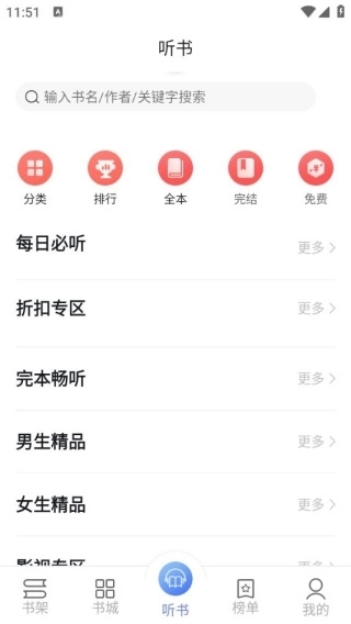 2、听书界面设有丰富多样的小说分类供用户查看,大家可以轻松进行选择。