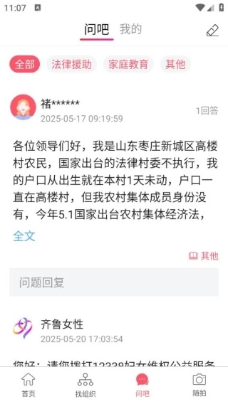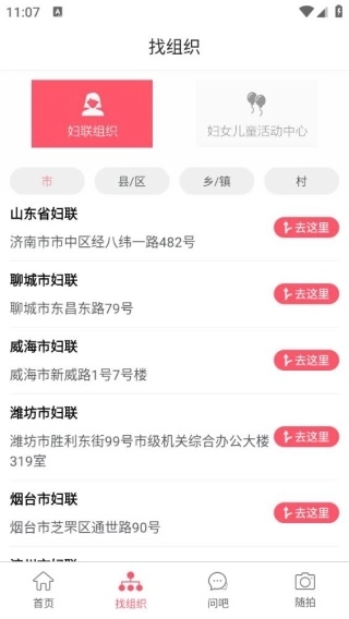 3、找组织”板块包含市县乡村各级妇联组织的信息,大家都能直接进行查看。