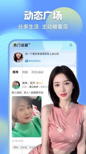 3、动态分享与互动:用户能够发布动态,平台支持点赞、评论等互动功能,用户还可借助动态广场结识志同道合的朋友。