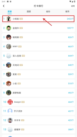在打卡排行列表中,找到小蚂蚁条目,点击进入其个人主页。
