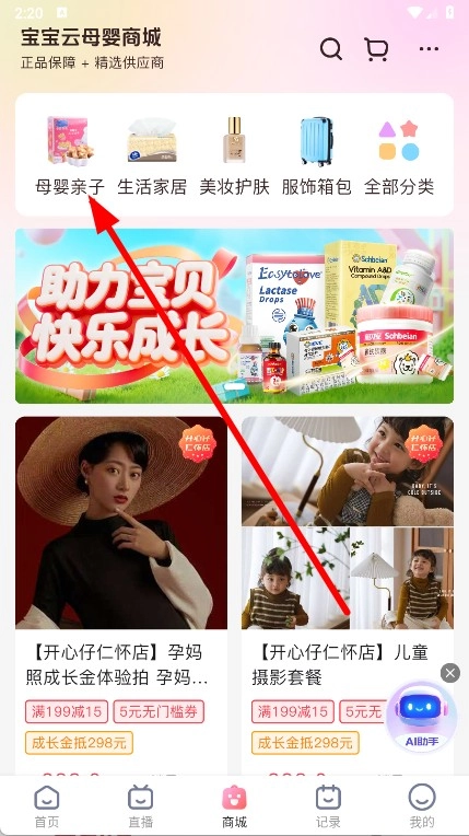在商城页面,点击母婴亲子分类。