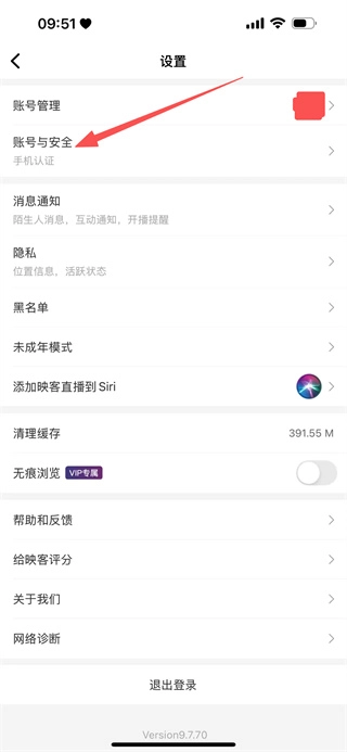 3、进入设置页面后,找到并点击“账号与安全”选项,即可进入账号安全页面。