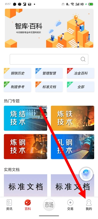 1、打开今日钢铁,点击底部导航我的,进入我的页面。