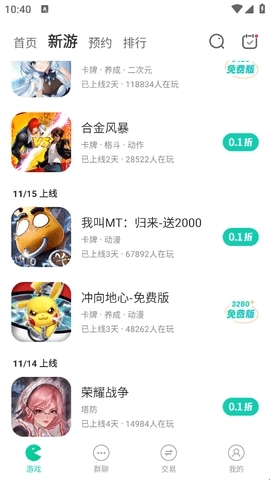 新游版块会详细呈现每日上线的新游戏,点击进入即可查看相关内容。