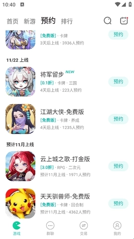 预约版块里会展示未来几天即将上线的游戏,你可以看看有没有自己喜欢的,还能提前进行预约。