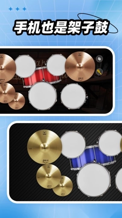 真实还原架子鼓演奏体验,爵士鼓与舞曲鼓两种类型,丰富多元的音色选择,助力你的架子鼓创作绽放独特风格。