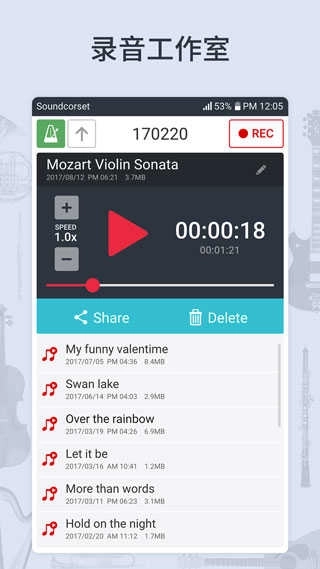 1、在这里,你可以借助语言记录器来留存自己每次的音乐作品,录制好的音频能够随时收听;