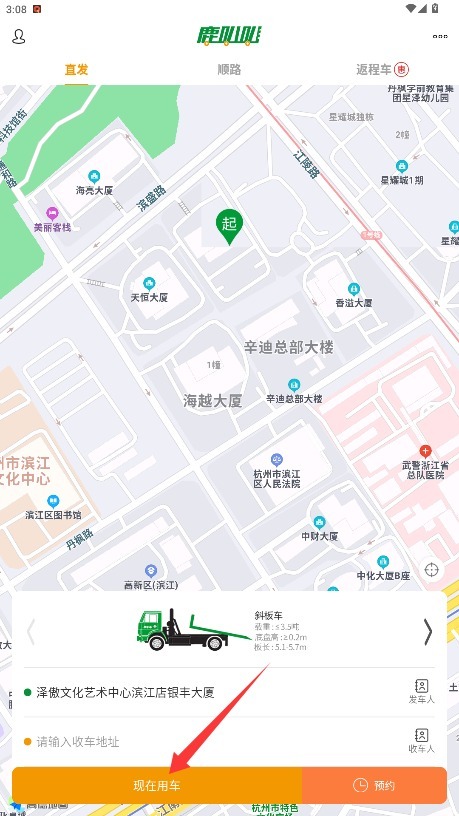 4、完成信息填写后,你既可以选择立即用车,也能够设定预约时间,届时系统会自动匹配周边车辆来提供服务。
