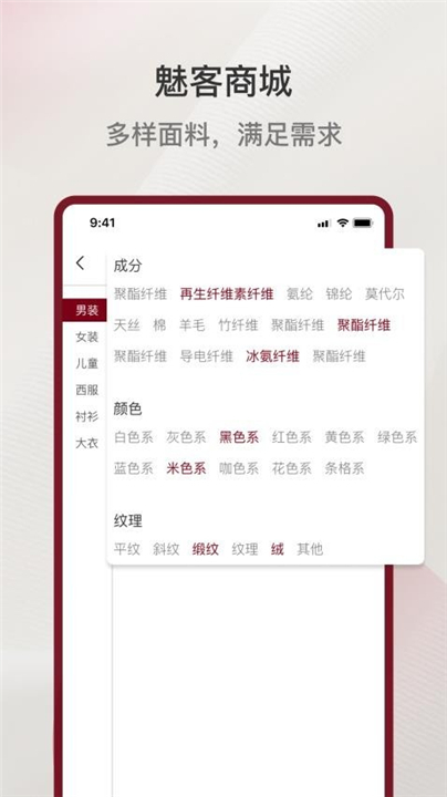2. 魅客商城涵盖的面料种类丰富至极,男女装面料、针织面料、高端定制面料、梭织面料等一应俱全,用户借此可一次性搞定所有面料采购事项。