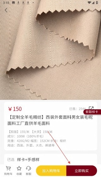 5. 贴心的好物收藏服务:要是用户碰到喜欢的面料,能够把它添加到收藏夹里,这样后续查看和下单就更加便捷了。