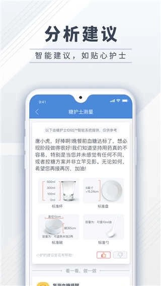 3、护士贴心提示:血糖控制效果的基础分析、用药提醒、监测提醒,全方位的细致关怀,让您仿佛拥有了专属的私人护士;