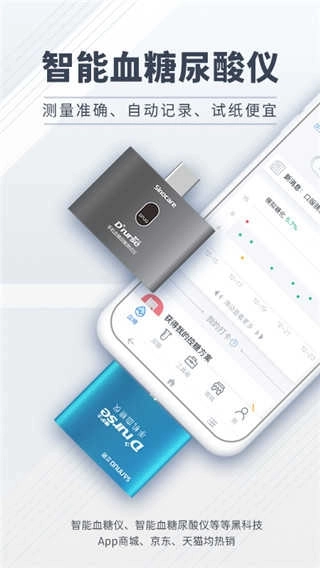 血糖检测:连接您的血糖仪后,依据应用给出的指引完成检测,相关数据会被自动记录下来。