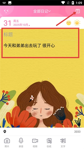 2、在所有日记页面中,点击右下角的编辑按钮,即可进入日记编辑界面。
