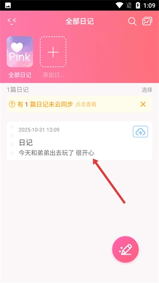 4、保存操作完成后,已撰写的日记可在全部日记列表中进行查看,此外还能执行云同步等相关操作。