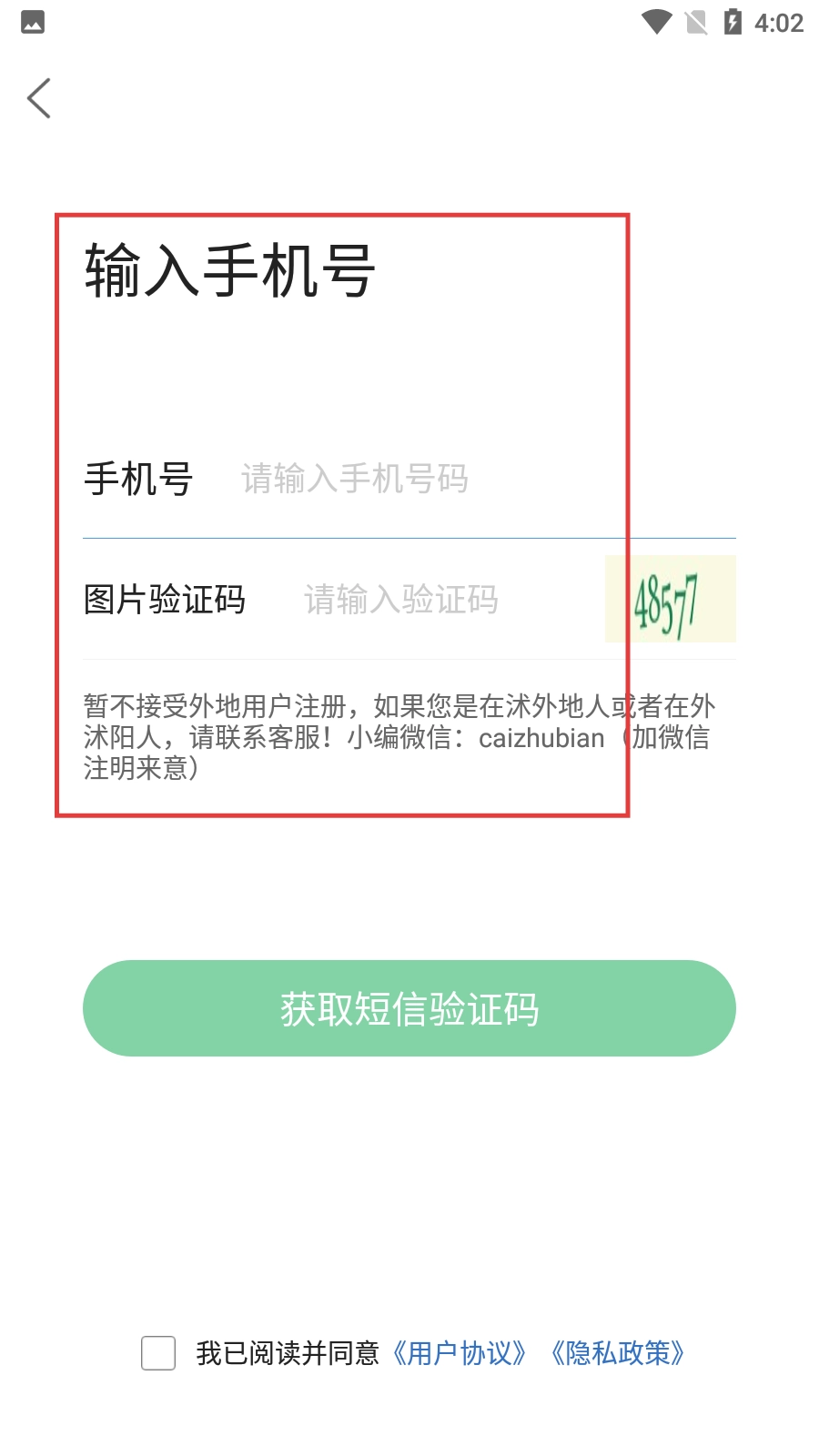 4、在注册页面填写手机号与图片验证码,并完成后续的注册流程。