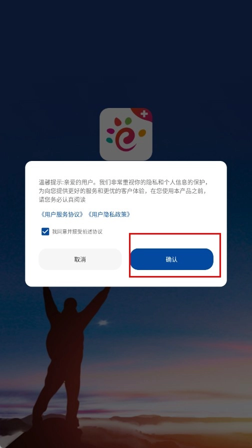 1、阅读《用户服务协议》《用户隐私政策》后,勾选同意并点击【确认-功能按钮】,进入软件。