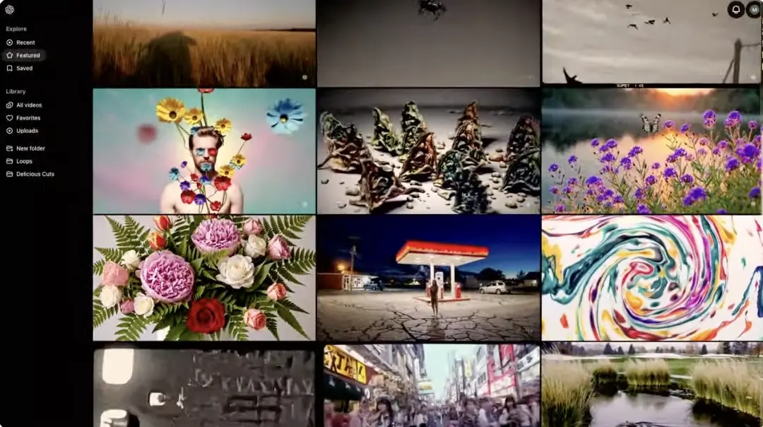 1、类似于 Midjourney 的网页界面,Sora同样拥有自己单独的用户界面,用户不仅能够整理和浏览生成的视频,还能查看其他用户的提示词和精选视频。