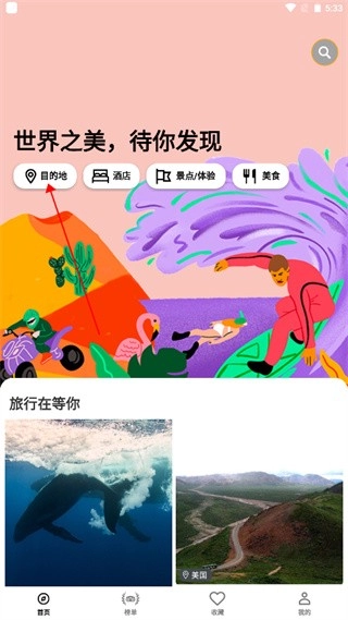来到首页,点击“目的地”;