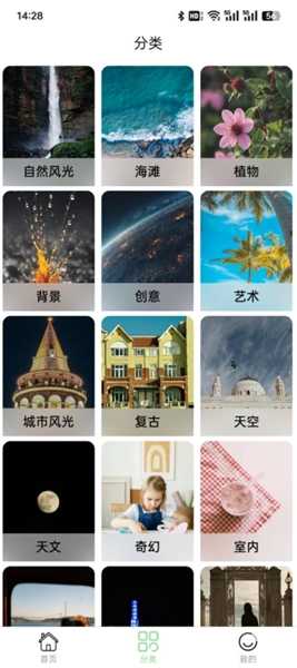 3、借助壁纸分类功能,各类丰富多样的高清美图壁纸资源,都能像探囊取物一样轻松获取。