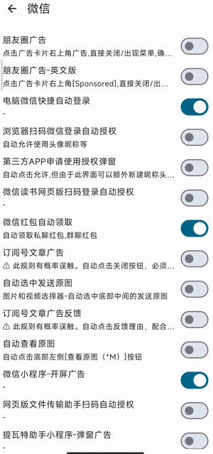 更实用的是,这款软件还具备自动点击抢红包的功能,同样是借助无障碍权限来实现的。眼看就要过年了,有了这个功能,大家再也不用为抢不到红包而发愁,也不必担心账号被封禁的问题了。
