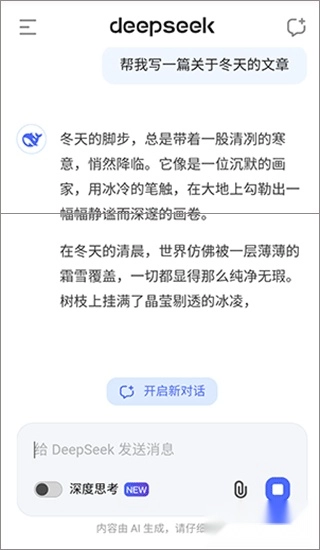 deepseek手机版是一款专业实用的AI智能助手。这款deepseek 2025手机版搭载了强大的AI智能化处理系统,可与用户展开自然流畅的聊天对话,还能精准快速地解答用户的各类问题。此外,deepseek还能为用户生成文章、报告等多种类型的内容,为内容创作和营销文案提供有力支撑!