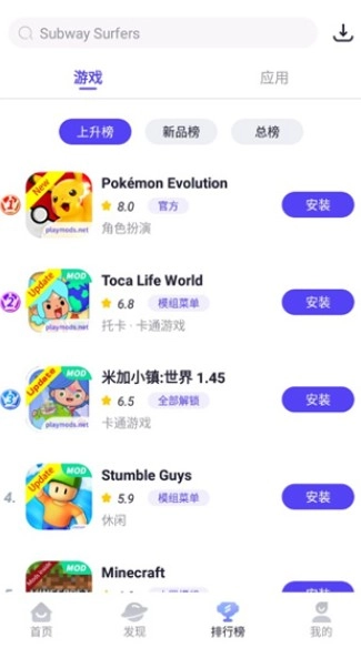 3、小编在此以地铁跑酷为例,在这个界面里直接点击安装就能开始游戏了。