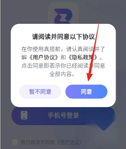 1、打开真搭点击同意进入下一步