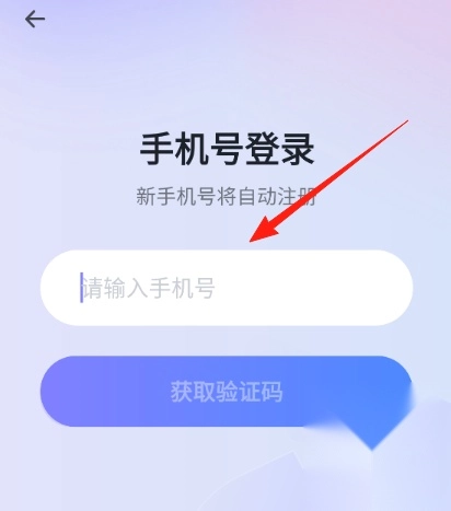 3、填写您的手机号码,获取验证码(若为新手机号,系统将自动完成注册)