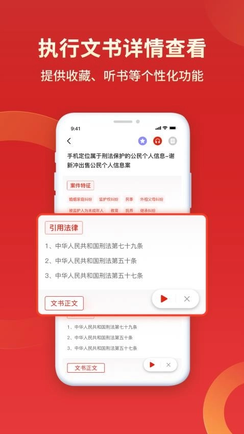 用户还能借助听书功能播放执行文书,以便随时听取案例的详细内容。