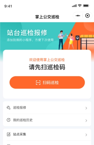 为配合城市公交站点的管理与维护工作,掌上公交新推出“公交站台巡检系统”。工作人员或市民只需通过微信搜索小程序进入该系统,扫描公交站牌上的二维码,或在地图中选定对应站点,就能上报站点存在的问题。公交方还可依据实际需求,灵活配置巡检报修、站点采集、站点清洁、站点维修等功能模块。