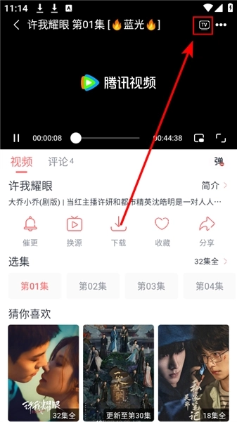 1、在播放界面点击右上角的TV图标,软件便会自动搜索可投屏的设备。