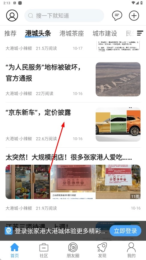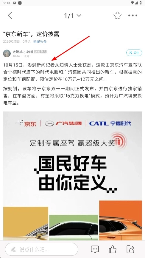 在“港城头条”里挑选你感兴趣的新闻,像【“京东新车”,定价披露-新闻】这类,点击就能进入详情页面。