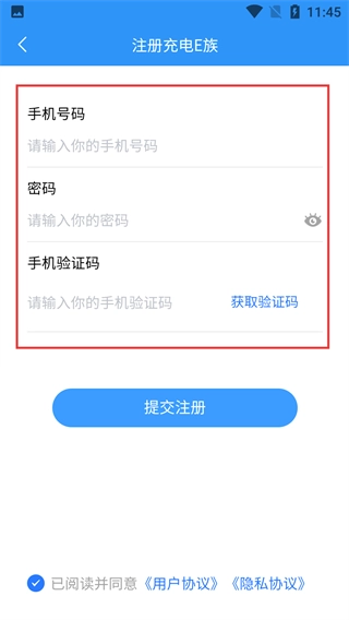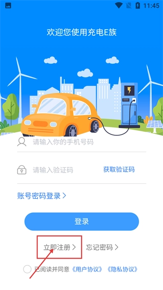 在登录界面,点击“立即注册”按钮,即可开启注册成为充电E族的流程。